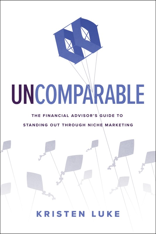 In Uncomparable, veteran financial services marketing consultant Kristen Luke challenges the traditional concept of striving to be the best financial advisor in the industry. Instead, encourages financial advisors to become "uncomparable" by owning a niche and establishing themselves as an expert in solving one problem for one type of client. In this book, Luke argues that being "better" than the competition is not enough because you can be surpassed by other financial advisors who add just one additional service or implement a slightly superior approach.